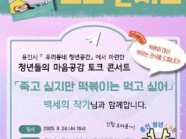 용인특례시는 오는 24일 ‘죽고 싶지만 떡볶이는 먹고 싶어’의 저자 백세희 작가를 초청해 토크 콘서트를 개최한다고 16일 밝혔다.이번 행사는 24일 오후 7시 동백호수공원 내 ‘우리동네 청년공간’ 카페