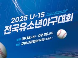 구미시가 9월 18일부터 30일까지 강변야구장 3개 구장에서 'U-15 전국 유소년 야구대회'를 개최한다. 이번 대회는 대한야구소프트볼협회가 주최하고 구미시야구소프트볼협회가 주관한다. 전국 중학교 야구대