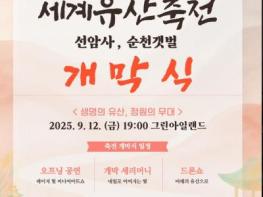 순천시와 순천시 세계유산보존협의회는 오는 12일 19시 그린아일랜드에서 '2025 세계유산축전 선암사, 순천갯벌' 개막식을 개최한다고 밝혔다.세계유산과 함께 생활하고 있는 선암사 스님과 갯벌마을 주민을