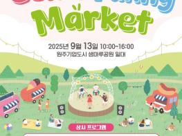 원주시는 오는 13일 오전 10시부터 오후 4시까지 기업도시 샘마루공원 일원에서 관내 기업과 시민이 함께하는 ‘기업도시 상생마켓: 컴 퍼니 마켓(Come Funny Market)’을 개최한다.원주시와 강원특별자치도