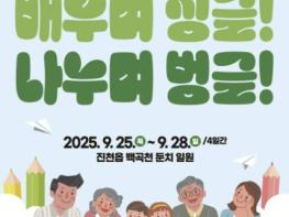 충북 진천군은 오는 9월 25일부터 9월 28일까지 4일간 진천읍 백곡천 둔치 일원에서 제15회 생거진천 평생학습축제를 개최한다.이번 축제의 주제는 ‘배우며 싱글! 나누며 벙글!’로 평생학습을 통해 싱글벙