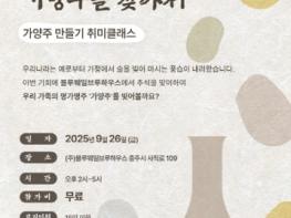 충북도와 충청북도역사문화연구원(원장 김양희)은 국가유산청의 ‘2025 전승공동체 활성화 지원사업’의 일환으로 '충북의 가양주, 청년과 함께하다' 사업을 추진하고 있다고 밝혔다. 본 사업은 충주시·제천