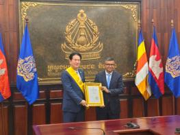 이동섭 국기원장이 캄보디아 국왕으로부터 훈장을 수훈했다. 이 원장은 지난 9월 8일 오후 3시 30분 캄보디아 교육청소년체육부 접견실에서 캄보디아 왕국 모니사라폰(Monisaraphon) 훈장의 최고 등급인 마