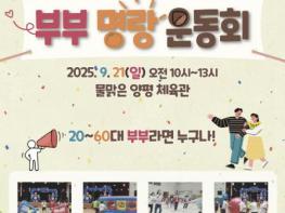 양평군은 오는 21일 오전 10시부터 오후 1시까지 물맑은양평체육관에서 관내 20부터 60대까지 부부 120명을 대상으로 ‘부부 명랑운동회’를 개최한다.이번 행사는 예비부부를 비롯해 중·장년 및 노년 부부