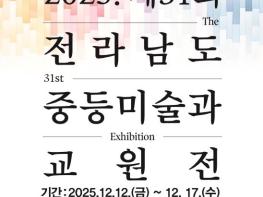 전라남도교육청은 12일부터 17일까지 목포문화예술회관 1층 전시실에서 ‘2025. 제31회 전라남도중등미술과교원전’을 개최한다. 이번 전시는 ‘전남중등미술교과교육연구회’가 주관하며 전남 중등 미술과