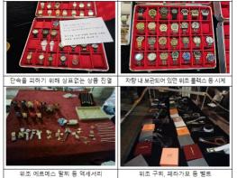특허청 상표특별사법경찰은 서울 동대문 ‘새빛시장’(일명 ‘노란천막’, ‘동대문 짝퉁시장’)에서 집중단속(’23.6.20~21)을 실시해 명품상표(브랜드) 위조상품 1,230점을 압수하고, 이를 판매한 ㄱ씨 등