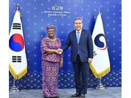박진 외교장관은 5.23일 방한 중인 응고지 오콘조-이웰라(Ngozi Okonjo-Iweala) 세계무역기구(WTO) 사무총장을 접견하고, △ 다자무역체제 복원, △ 경제안보 제고 방안, △ 개도국의 다자무역체제 참여 지