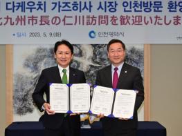 인천광역시는 9일 인천경제청 접견실에서 일본 기타큐슈시 다케우치 가즈히사(武?和久) 시장 등 대표단이 유정복 시장을 만나 양 도시의 경제·문화·관광 교류발전 방안에 대해 논의했다고 밝혔다. 이번 방