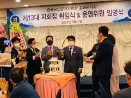 한국공인중개사협회 강화지회는 1일 제13대 지회장 김종혁 회장의 취임식을 개최했다. 김종혁 지회장은 지난 12대에 이어 13대 회장에 연임했다. 행사에는 강화군 이태산 부군수, 배준영 국회의원, 박용철
