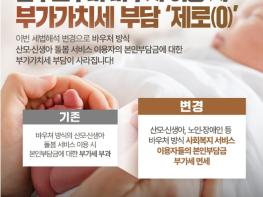 ■ 저출생 시대, 산후도우미 바우처 이용 시 부가가치세 부담 '제로(0)'이번 세법해석 변경으로 바우처 방식 산모·신생아 돌봄 서비스 이용자의 본인부담금에 대한 부가가치세 부담이 사라집니다!(기존)바우