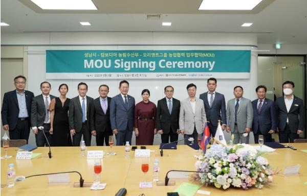시는 8월 2일 오후 5시 시청 2층 회의실에서 신상진 성남시장과 벵사콘 캄보디아 농림수산부장관, 장재진 오리엔트그룹 회장 등이 참석한 가운데 ‘농업 협력을 위한 협약식’을 했다.