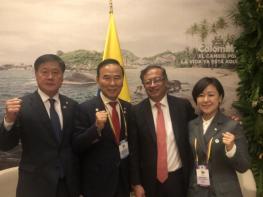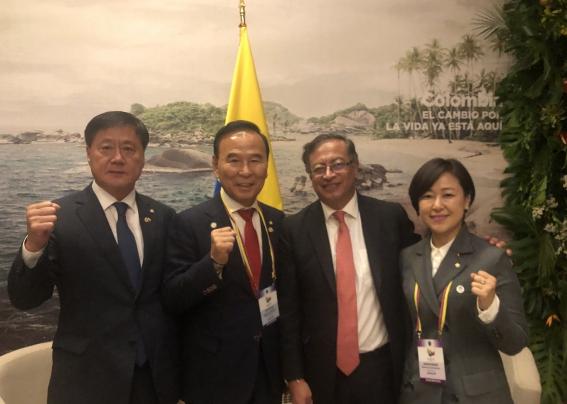 [중앙뉴스라인, 김영환기자] '구스타보 페트로(Gustavo Petro)'콜롬비아 신임 대통령은 8.6일 박덕흠 국회의원(국민의힘, 3선)을 단장으로 하는 대통령 취임식 경축특사단을 접견한 자리에서 자신의 대선 캠페인 기간 중 한국경제 발전 모델을 유권자에게 공약으로 제기하였다고 언급했다.