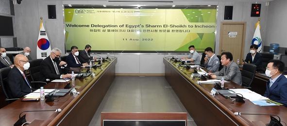 샴 엘 세이크는 올해 11월에 제27차 유엔기후변화협약 당사국총회(UNFCCC COP27*, 이하 COP27) 개최도시로 인천의 재난복원력 사례 및 재난안전 우수사례를 공유하기 위해 인천시를 방문했다.