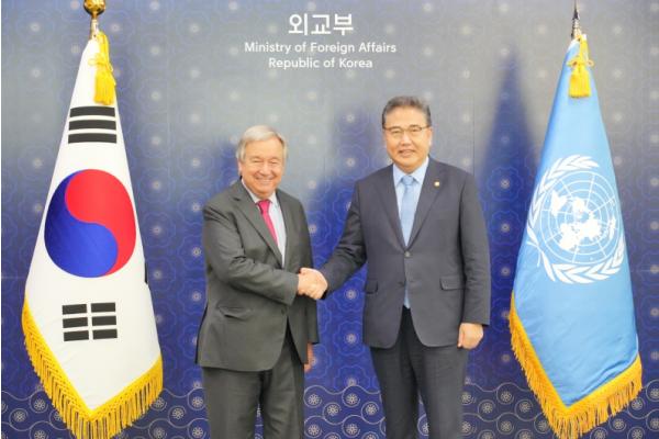[중앙뉴스라인, 김영환기자] 박진 외교부 장관은 8.12일 오후 안토니오 구테레쉬(Antonio Guterres) 유엔 사무총장과 면담하고 한반도를 포함한 지역 정세, 우크라이나 등 주요 국제 현안, 제77차 유엔총회 준비현황 등에 대해 의견을 교환하였다.