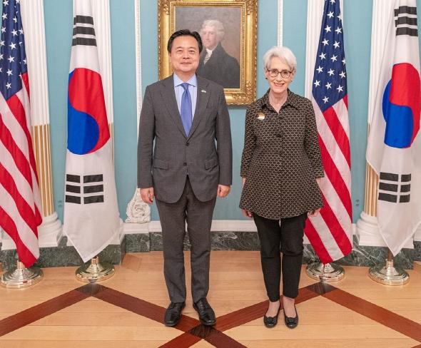 [중앙뉴스라인, 김영환기자] 조현동 외교부 제1차관은 9.15일 오후 미국 국무부에서 웬디 셔먼(Wendy Sherman) 국무부 부장관과 한미 외교차관 회담을 갖고, 한미관계와 북한ㆍ북핵 문제, 지역 및 글로벌 현안에 대해 의견을 교환했다.