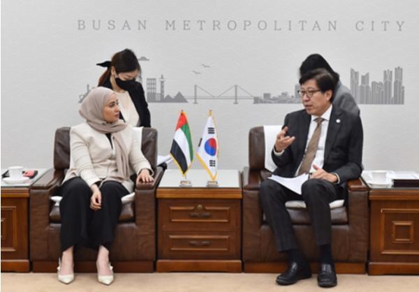 박형준 시장은 먼저 오후드 칼판 알 루미 장관에게 부산 방문에 대한 감사 인사를 전하며 “아랍에미리트는 대한민국이 중동국가 최초로 ‘전략적 동반자 관계국’으로 정해 여러 분야에서 긴밀히 협력하고 있는 형제국가다. 부산시와도 다방면에서의 교류·협력 관계를 맺을 수 있을 것으로 기대한다”고 전했다.