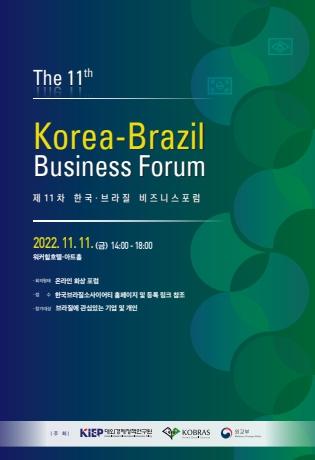 [중앙뉴스라인, 김영환기자] 외교부와 대외경제정책연구원(KIEP), 한국-브라질소사이어티(KOBRAS)는 11.11일 오후 서울 워커힐 호텔에서'제11차 한국-브라질 비즈니스 포럼'을 공동 개최할 예정이다.