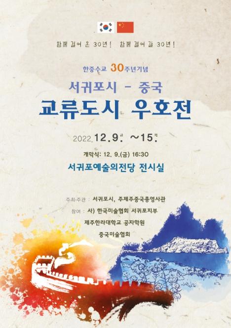 ‘함께 걸어 온 30년!, 함께 걸어 갈 30년!’을 주제로 진행되는 행사는 서귀포시와 주제주중국총영사관이 공동 주최하고 있으며 서귀포시와 교류를 맺고 있는 6개의 중국 교류도시, 사) 한국미술협회 서귀포지부, 중국미술협회, 제주한라대학교 공자학원이 함께 참여하고 있다.