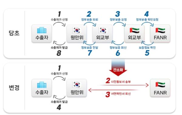 이번 행정약정 체결로 원자력 수출허가 업무에 있어서는 원안위와 FANR이 직접 처리할 수 있게 됐으며, 그 결과 핵연료 공급사업, 원전 유지보수 사업 등 향후 예상되는 수출허가에 소요되는 시간이 최대 6개월 단축되는 효과가 있을 것으로 예상된다.