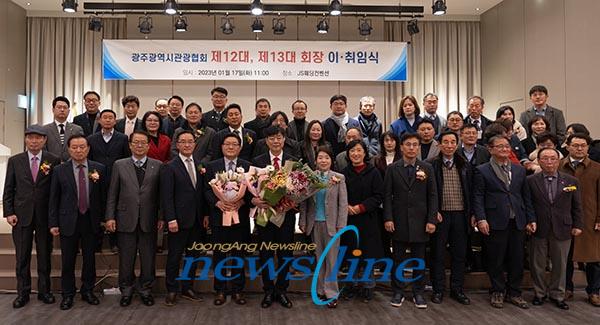 | <광주광역시관광협회는 1월 17일 광주시 상무지구에 위치한 JS웨딩컨벤션홀에서 제12대 정길영회장과 제13대 선석현 회장의 이·취임식을 개최 했다> |