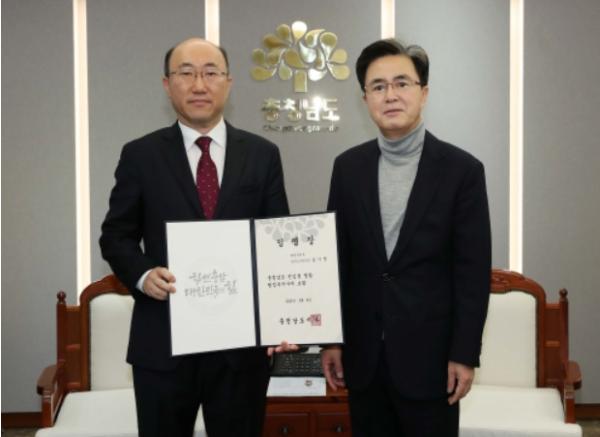 김태흠 지사에게 임명장 받고 직원들과의 인사로 취임식 대신해