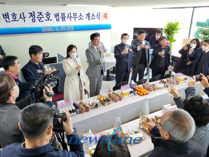 [중앙뉴스라인=장성대 기자] 정준호 변호사가 27일(월) 북구 동문대로 152 6층(무등도서관 사거리)에서 변호사 사무실 이전 개소식을 성황리에 마치고 주민 밀착형 대민변호 활동에 나섰다.