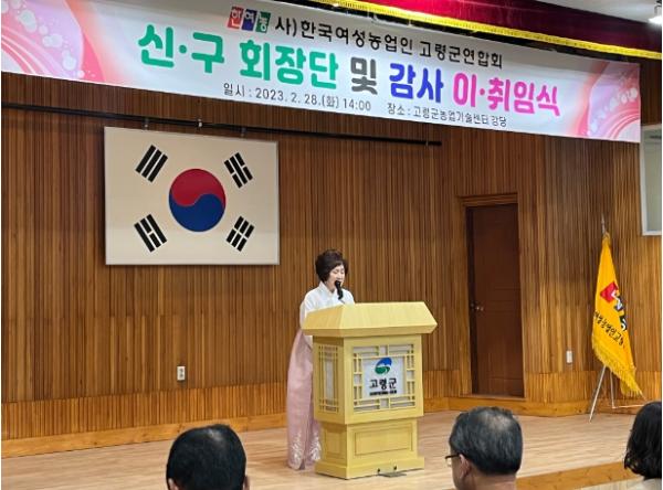 (사)한국여성농업인 고령군연합회는 2월 28일 14:00, 고령군농업기술센터 2층 강당에서 이남철 고령군수를 비롯하여 김은주 도연합회장 등 많은 내빈이 참석한 가운데 ‘(사)한국여성농업인 고령군연합회 제9·10대 임원 이·취임식’을 개최했다.