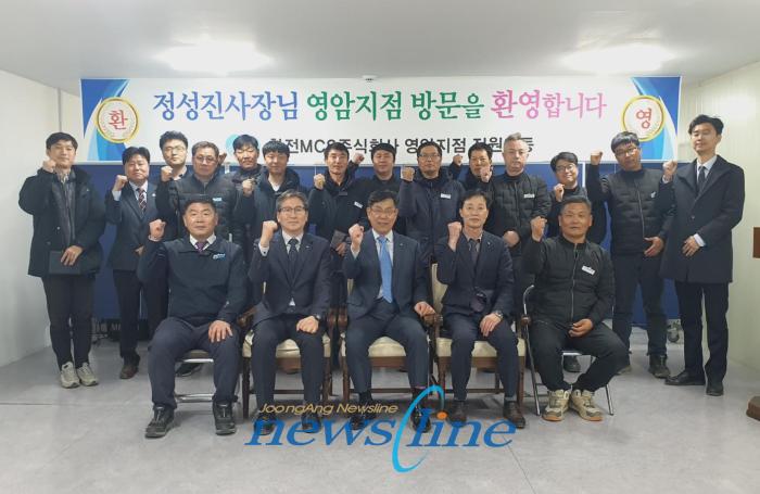 <정성진 제2대 한전MCS 신임 사장이 2월 1일 공식 취임 후 지점 현장 방문일정 중 3월 2일 영암지점을 방문해 직원들을 격려하고 의견을 청취했다. > |