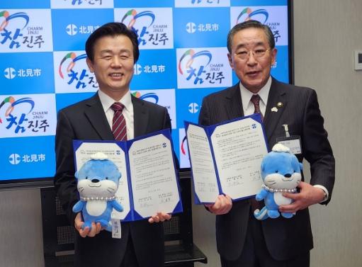 한편, 일본 기타미시는 인구 12만 명의 홋카이도 지역 산업경제 및 문화의 중심지로, 진주시와는 1978년 기타미 한일친선협회장의 요청으로 민간 로타리클럽과 교류를 시작한 후 1985년 5월 진주시와 기타미시 간 자매도시 협약을 체결해 지금까지 교류도시의 인연을 이어오고 있다.