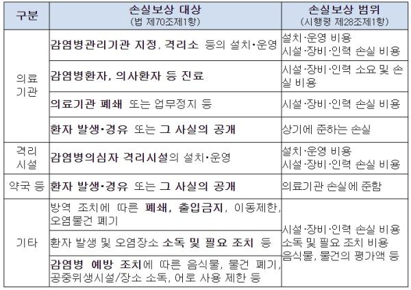 정부에서는 지난 2020년 4월부터 총 8조 6,544억 원의 손실보상금을 지급했으며, 이 중 치료의료기관 개산급(정산액 포함)은 601개 기관에 8조 4,132억 원이고, 폐쇄·업무정지 기관 손실보상은 76,342개 기관에 2,412억 원이다.