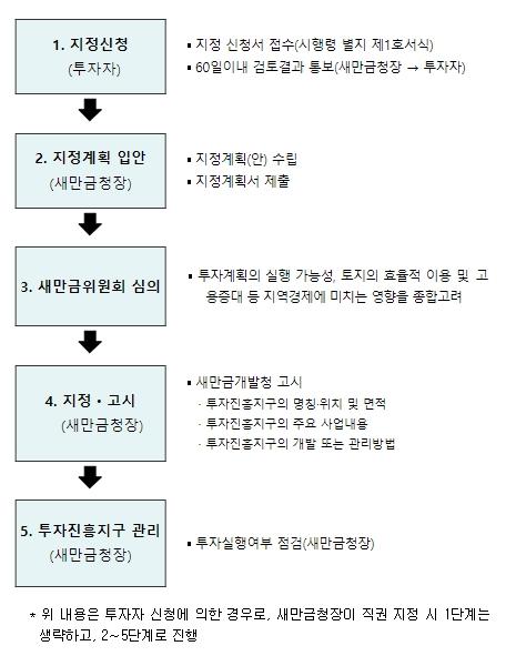 이를 위해 올해 7월 새만금사업지역 일부를 최초 투자진흥지구로 직권 지정할 계획 아래 관계부처 협의, 하위지침 마련, 새만금위원회 심의 준비 등을 병행하는 중이다.
