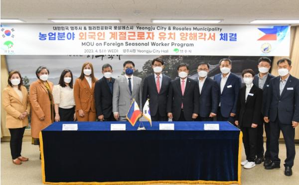 [중앙뉴스라인, 신기철기자] 영주시는 5일 안정적인 농촌인력 지원을 위해 필리핀 팡가시난주 로살레스시와 ‘외국인 계절근로자 파견 합의 업무협약’을 체결했다.
