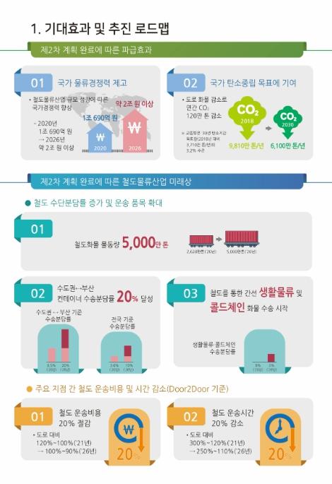 이에 정부는 이번'제2차 철도물류산업 육성계획'을 수립하여, 향후 5년 내 철도물류산업이 새로운 전환점을 맞이하고 타 교통수단과 공정한 경쟁체계가 확립될 수 있도록 제도적 기반과 지원방안을 마련했다.