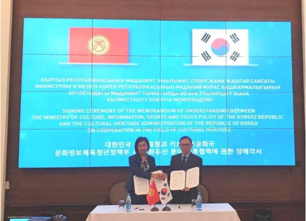 [중앙뉴스라인, 신기철기자] 문화재청은 4월 11일 오전 10시 30분(현지 시간) 키르기즈공화국 수도 비슈케크에서 키르기즈공화국 문화정보체육청년정책부(장관 알튼백 막수토브: Maksutov Altynbek Askarovich)와 문화유산 분야 교류 협력을 강화하기 위한 양해각서를 체결했다. 또한 같은 날 문화재청 산하 특수법인인 유네스코아태무형유산센터(사무총장 김지성)는 유네스코 키르기즈국가위원회(사무총장 사비라 솔톤겔디에바)와 해당 양해각서의 내용을 구체화하기 위한 문화재청의 국제개발협력(Official Development Assistance, ODA) 사업 추진 내용이 포함된 협의의사록(Record of Discussion, RD)을 체결했다.