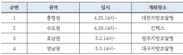 한편 이번에 개정된 규정은 5월 제안서 접수 분부터 적용되며, 관련 내용에 대한 상세한 설명과 안내를 위해 기업 대상 권역별(수도권, 중부권, 영남권, 호남권) 설명회를 아래와 같이 개최할 예정이다.