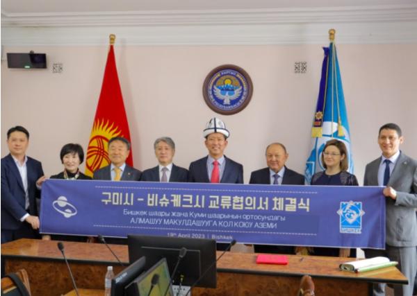 키르기즈공화국을 방문중인 구미시 대표단은 4월 19일 오전, 비슈케크 시청에서 아브드카드로브 에밀벡(Abdykadrov Emilbek) 비슈케크 시장, 부시장, 주키르기즈공화국 대한민국 대사 등 20명이 참석한 가운데 1991년 8월 양 도시간 자매결연 체결 후 32년간 이어진 우정을 바탕으로 공동발전과 교류활성화를 위한 교류협의서를 체결했다.
