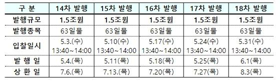 원활한 재정집행을 위해 단기국채(63일물)를 5회에 걸쳐 발행