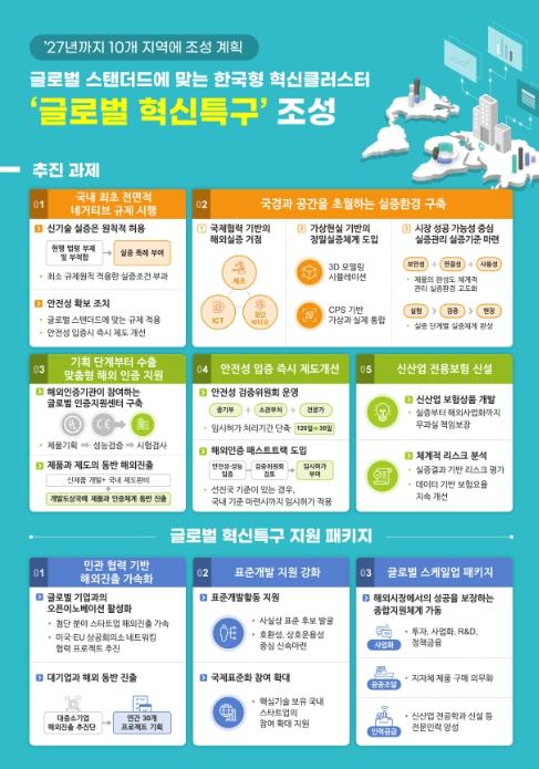 '글로벌 혁신 특구 조성방안'은 이러한 파트너십을 기반으로 실증부터 사업화까지 글로벌 스탠더드에 맞는 한국형 혁신 클러스터인 글로벌 혁신 특구를 조성하여, 미래세대의 자유롭고 창의적인 도전을 지원하기 위한 기회의 플랫폼을 구축하기 위해 마련됐다.