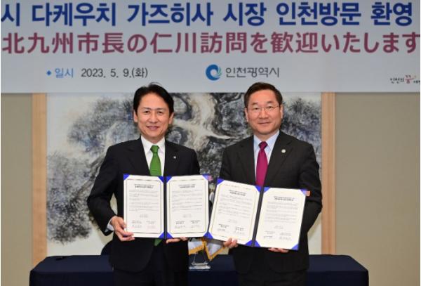 [중앙뉴스라인, 신기철기자] 인천광역시는 9일 인천경제청 접견실에서 일본 기타큐슈시 다케우치 가즈히사(武?和久) 시장 등 대표단이 유정복 시장을 만나 양 도시의 경제·문화·관광 교류발전 방안에 대해 논의했다고 밝혔다.