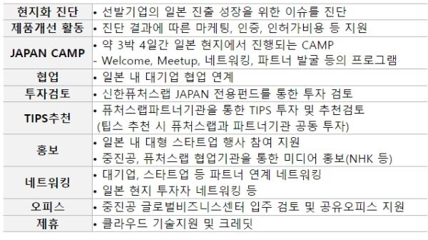 특히, 민간역량을 적극 활용하고자 ‘일본진출 스타트업 공동 육성사업’을 신한금융그룹과 추진할 예정이며, 이에 대한 운영방안 청취 및 스타트업 대상 홍보도 병행했다.