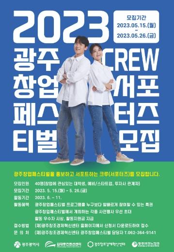 아울러 2023 광주창업페스티벌 홍보단(크루)은 창업에 관심 있는 대학생부터 창업기업, 투자사 등 누구나 지원이 가능하며 개인 뿐 아니라 단체로도 신청이 가능하다. 홍보단(크루)은 사회관계망서비스(SNS)에 자유로운 방식으로 광주창업페스티벌 홍보 활동을 하게 된다.
