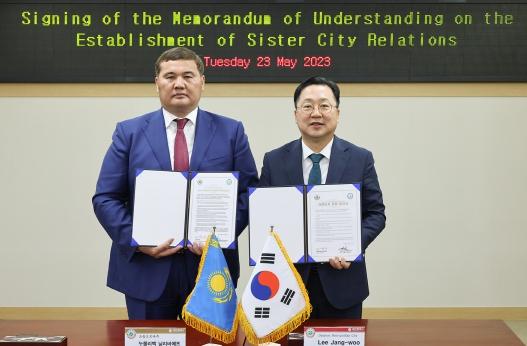 이장우 대전시장은 23일 대전시청을 방문한 누를리벡 날리바예프(Nurlybek Nalibayev) 카자흐스탄 크즐오르다주 주지사와 자매도시 협약을 체결하고, 교류협력 증진방안을 논의했다.