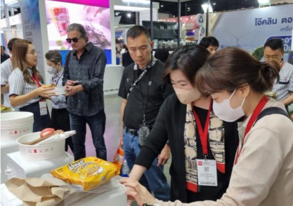 범일산업은 K-푸드로 인기인 라면 즉석조리 시연을 선보이는 전략으로 바이어들의 이목을 끄는 데 성공하며, 태국을 비롯한 아세안 시장 진출 전망을 밝혔다.