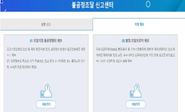 또한, 통합 신고센터 내 “익명 제보 기능을 신설하여 누구나 신분 노출 부담 없이 불공정 조달행위를 신고할 수 있게 지원하는 한편, 계약과정에서 수요기관 담당자가 조달업체를 대상으로 부당한 요구를 하는 피해에 대해 민원을 제기할 수 있는 “수요기관 갑질 피해 민원?신고센터”를 시범 개설하여 조달시장 내 상대적 약자인 조달업체의 애로사항을 해소할 수 있는 통로도 마련한다.