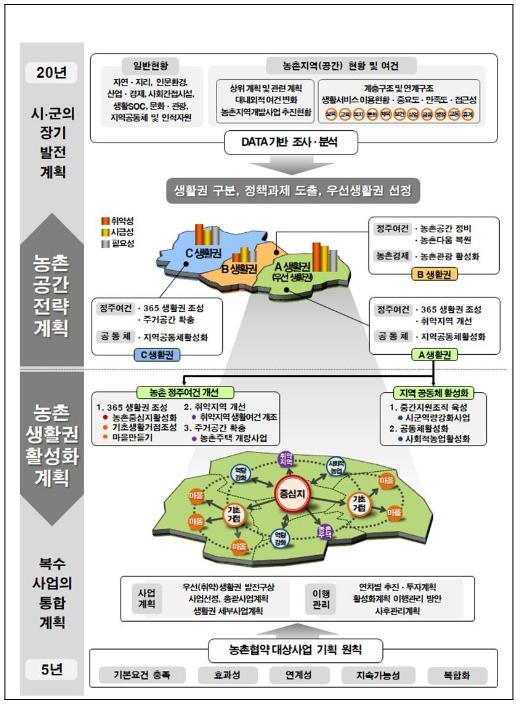 협약 시·군 대부분은 농촌지역에 부족한 생활편의, 문화, 교육, 돌봄 등의 기능을 확충하는 기초생활 거점 조성사업을 중점 추진할 계획이며, 우리 명산 관광(구례), 도자산업(여주), 스포츠산업(영주, 예천) 등 각 지역의 특수성을 살리는 사업도 추진할 예정이다.
