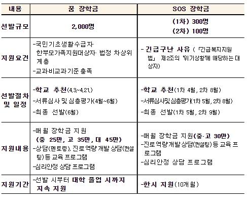 선발된 장학생은 총 10개월간 매달 30만 원씩 장학금을 지급받으며, 6월부터 진로 상담 등 교육 및 심리안정 프로그램에 참여할 수 있다.