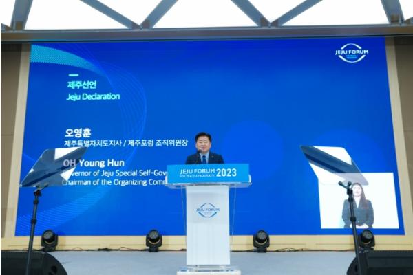 오영훈 지사는 이날 오후 제주국제컨벤션센터에서 진행된 제18회 제주포럼의 페막세션에서 ‘제주선언’을 통해 이같이 밝혔다.