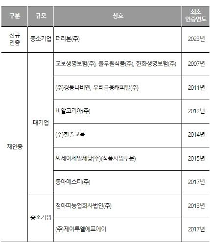 인증기업은 서류 및 현장심사, 공정위·한국소비자원·민간위원으로 구성된 인증심의위원회를 거쳐 최종 선정됐다.