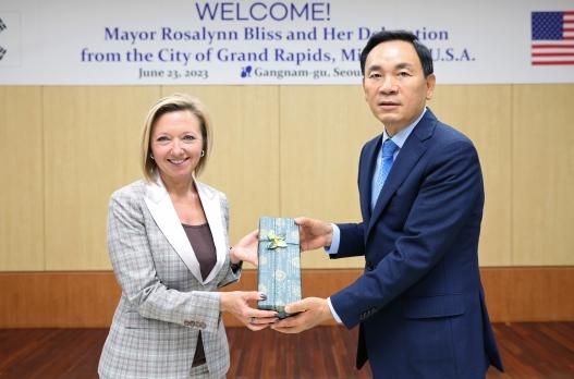 조성명 강남구청장은 “강남구와 그랜드래피즈시는 2021년 화상으로 친선결연을 체결한 이후 다양한 협력을 이어오고 있다”며 “오늘을 계기로 한층 더 돈독한 사이가 될 수 있길 기대한다”고 말했다.