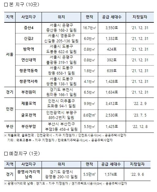 [중앙뉴스라인, 우제헌기자] 국토교통부는 7월 10일 부천 중동역 동측, 중동역 서측, 소사역 북측, 성남 금광2동 및 인천 동암역 남측 5곳(9,422호)을 도심 공공주택 복합사업 예정지구로 지정한다고 밝혔다.